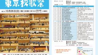 同窓会ニュース 10月26日日曜日 東京校歌祭にご参加ください 今年も都立高校の同窓生が母校の校歌を大会場で歌う「第33回東京校歌祭」が杉並公会堂で開催されます。ぜひ参加して校歌と応援歌を歌いましょう。 第33回東京校歌祭 会場:杉並公会堂 大ホール集合:12:15(2階大ホール前)練習:... 2025.10.10 同窓会ニュース同窓生のたより団体・クラブ
