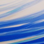 和紙や綿キャンバスに、目には見えない『心』や『魂』の世界を青色や黄金色や七色で宇宙的に現しています。